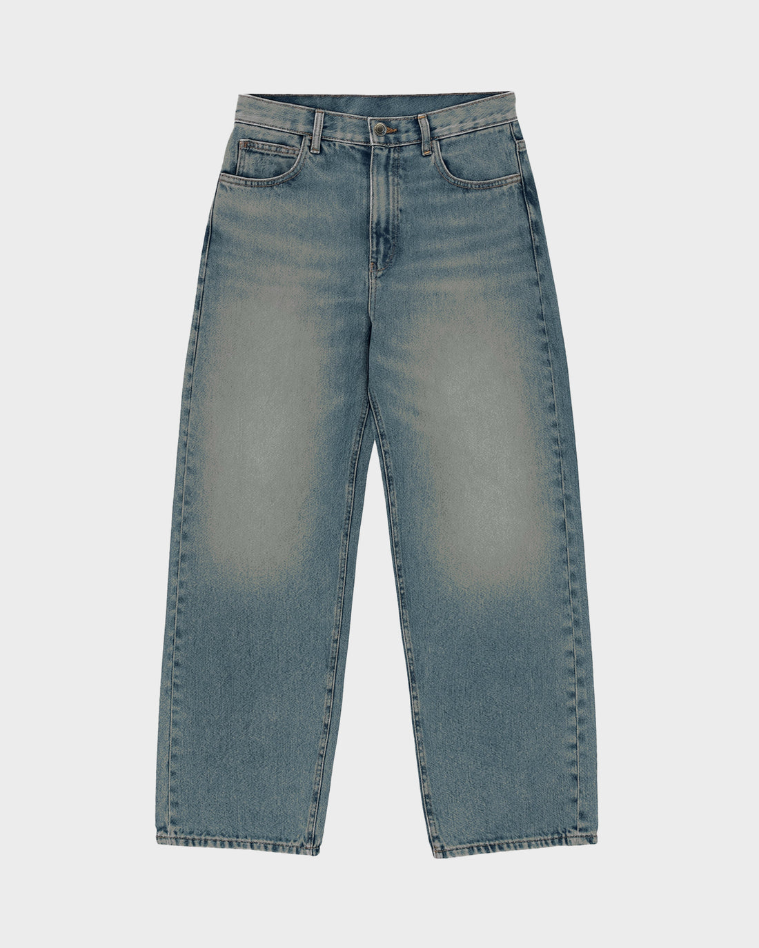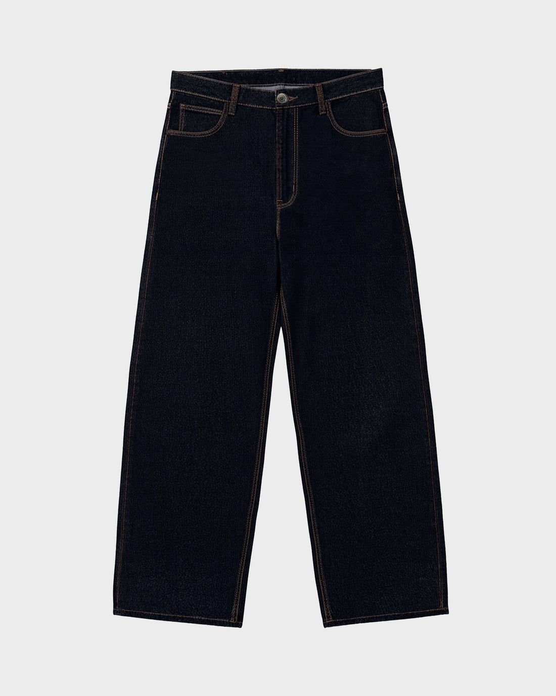 Loose fit 5-Pocket Denim Jeans Woven Label im HosenschlitzCustom "Prohibited" Knopf PU Leder Patch auf der Rückseite des...
