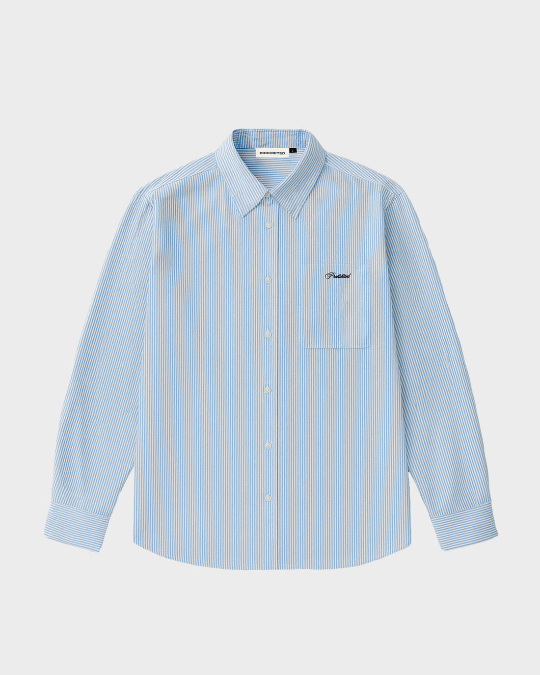 Leichter oversized fitGestreifter Stoff "Prohibited" Stickerei auf der linken Brust"PxS" Stickerei auf dem Ärmel100 % Baumwolle